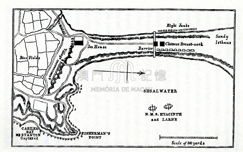 【33】Chinese Repository, Vol. 9, No.4, p.238-239. 〈兩廣總督革職留任祁𡎴奏覆遵旨查明波啓善在關閘與夷人接仗受傷各情形摺〉則稱清兵“陣亡者6人,壯勇亦傷斃3人,受傷兵30餘名,其帶兵營員內,參將波啟善與水師守備陳宏光頭面受傷…約擊斃登岸夷匪十餘名,其船上夷匪傷斃多寡,因該夷兵船離岸頗遠,水陸相隔,實在難以確查”。詳見中國第一歷史檔案館、澳門基金會、暨南大學古籍研究所合編:《明清時期澳門問題檔案文獻匯編(二)》,北京:人民出版社,1999年,第493-495頁。