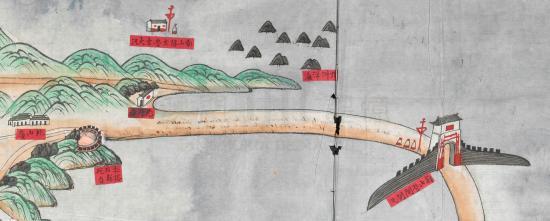 圖3 乾隆年間〈中華沿海形勢全圖〉中的關閘(“︁青州”二字右側)。