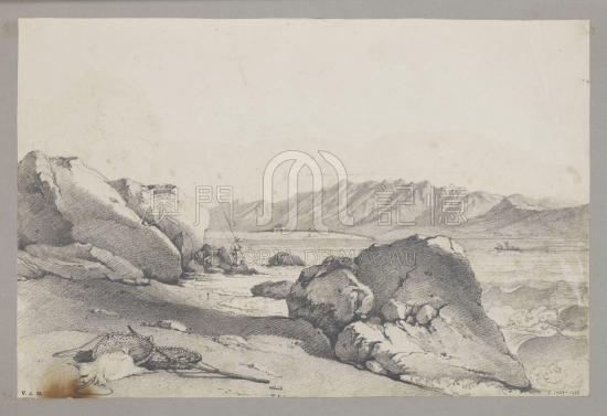 圖6 錢納利(George Chinnery)筆下由劏狗環遠眺關閘景色,1825至1852年。維多利亞和艾伯特博物館(Victoria and Albert Museum, V&A)藏。