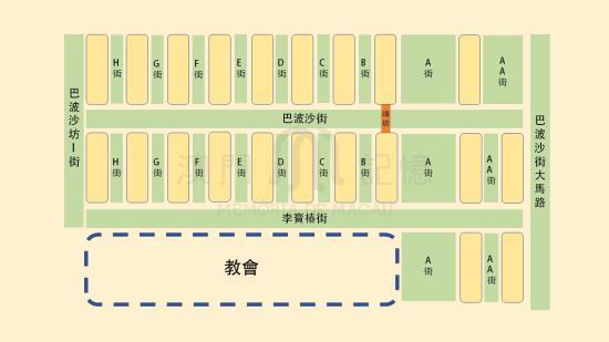 1931年落成時巴波沙坊的規模共有十六座平房,每座平房有三十個單位,合計有480個單位。巴波沙坊的主幹街道是巴波沙街【20】,而橫街以英文字來命名,從入口的巴波沙坊A街至海邊的I街【21】,而作為巴波沙坊正入口的A街與巴波沙街的交界建造牌坊。