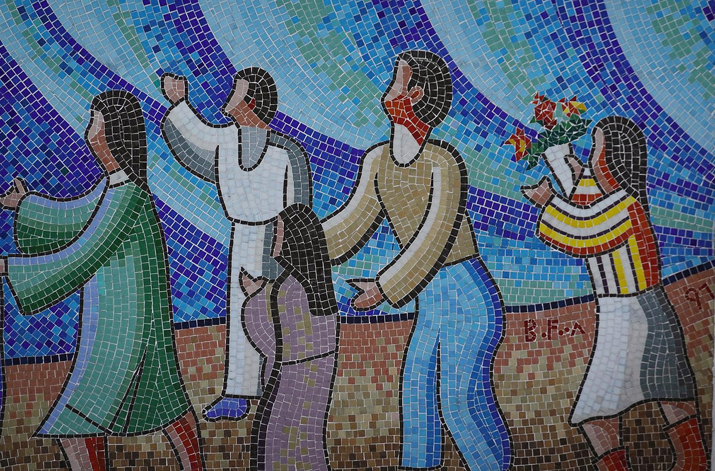 圖7 利瑪竇中學初小暨幼稚園的外牆的馬賽克壁畫。筆者攝。