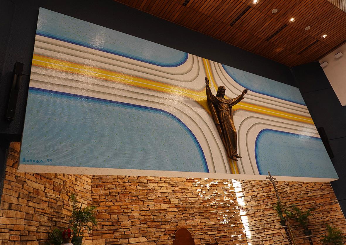 最後一幅是在聖若瑟勞工主保堂,是主祭台耶穌像背後的十字光芒馬賽克畫(1999年,簽名Borboa)。