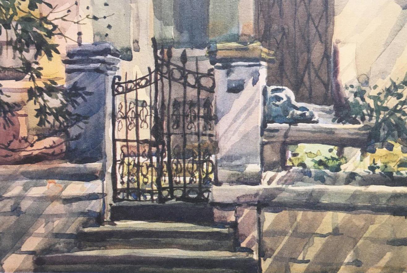 圖11 筆者1988年繪畫的東望洋斜巷20號大宅入口(摘自《呂澤強作品選》,澳門基金會,2015年,第20頁)。