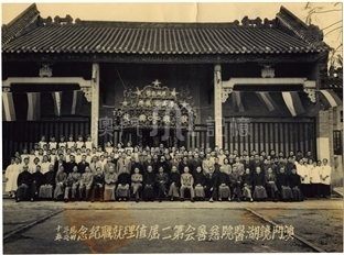 拍攝時間︰民國三十三年(1944年)二月十五日 澳督戴思樂、政府官員及嘉賓社團代表等應邀蒞院參加典禮,圖為值理與嘉賓合照。