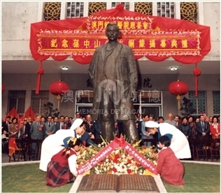 孫中山先生於1925年3月12日在北京逝世。3月29日以澳門華僑名義在鏡湖醫院舉行追悼會,孫中山先生友人、“四大寇”之一的楊鶴齡主祭。據《廣州民國日報》1925年4月2日報導,1925年3月29日澳門華僑在鏡湖醫院開會追悼孫中山先生。是日商界多數下半旗誌哀,休業者亦不在少數,足見先生感人之深也。前一夜至早晨十時,細雨霏霏,路途泥濘,而赴追悼會者,仍絡繹不絕。至十一時驟雨忽止,且微露陽光,赴會者更形擠擁。十一時五十分,開始舉行追悼禮,會場放置鏡湖醫院祭奠花籃﹔追悼會由楊鶴齡為主祭;全體皆為飲泣,至奏哀樂時,而全體之輩聲動矣。隨後到祭者,全澳學校學生七、八千人。各界男女逾二萬人,莫不表示哀感。當年澳門人口約七、八萬人,參加追悼會有學校師生及各界人士逾二萬人,故此對孫中山先生偉大的中國民主革命先行者,表示沉痛的哀悼和崇高的敬意。追悼會外,還開設演說場,聽眾數千人。據《澳門歷史新說》一書所述,“1925年孫中山先生病逝北京,澳門鏡湖醫院組織大規模的吊唁活動,年邁的飛南第也出席了追悼會。”