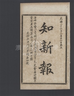 《知新報》第八十期刊登《中國皇帝與高麗皇帝書》、《意人保舉議員積弊》、《加拿大至澳海底電線》、《英人慮俄法奪遠東商利》等文章。《知新報》於1897年2月22日(清光緒二十三年正月二十一日)創刊,由康有為籌劃出版、梁啟超兼理筆政、何廷光(字穗田)出資、康廣仁則負責具體運作創辦,該報於維新運動時期所創辦,為維新派在華南地區的重要刊物。1898年(清光緒二十四年)的百日維新失敗後,《知新報》仍繼續出版。1899年7月20日,康有為在加拿大創立保救大清皇帝會後,更將《知新報》與《清議報》定為會報。《知新報》原按上海《時務報》模式創辦,初擬為《廣時務報》。及後經梁啟超斟酌後,才定名《知新報》,報頭使用篆書。其辦報宗旨,正如其創刊文章的「知新報緣起」指出:「不慧於目,不聰於耳,不敏於口,曰盲、聾、啞,是謂三病」而「報者,天下之樞鈴,萬民之喉舌也,得之則通,通之則明,明之則勇,勇之則強,強則政舉而國立,敬修而民智。」《知新報》是澳門第二份中文報紙,翻譯不少西文報刊,錄英、俄、德、法、美、日等各國大事,同時遠銷海外舊金山、悉尼、安南、新加坡等地。設社址於澳門南灣大井頭四號,其後在1900年11月22日(清光緒二十六年十月初一)出版的第129期有遷館告白:從大井頭四號移寓至門牌十九號。初為5日刊,自1897年5月31日(清光緒二十三年五月初一)的出版的第20冊起,改為旬刊 (十日刊),篇幅較前增加一倍;又至1900年2月14日(清光緒二十六年正月十五日)出版的第112冊開始,再改為半月刊,每期約60餘頁,冊裝。目前所收集的最後一期是1901年2月3日(清光緒二十六年十二月十五日)出版的第134冊,是否仍有後續出版的刊冊,有待進一步研究。本會感謝中山大學圖書館的支持,合作將該館珍藏的共134冊《知新報》原件進行電子化,得以在此平台與公眾分享。此外,本會為每期之目錄加設鏈結功能,以便各方讀者閱讀。《知新報》主要撰述和譯者如下:撰述:何樹齡、韓文舉、梁啟超、徐勤、劉楨麟、王覺任、陳繼儼、歐榘甲、康廣仁、黎祖健、麥孟華、林旭、孔昭炎、康有為 英譯:周靈生、盧其昌、陳焯如、甘若雲葡譯:宋次生德譯:沙士日譯:唐振超、山本正義、康同薇